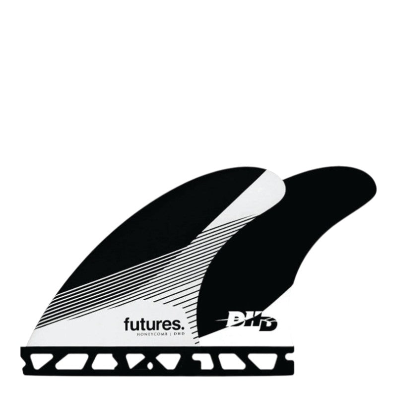 The DHD Large, designed by Australian shaper Darren Handley of DHD Surfboards, is a honeycomb thruster in the Rake template category. The honeycomb construction offers a balanced flex pattern. The swept back shape provides more drive and hold through turns, ideal for a high-performance approach.