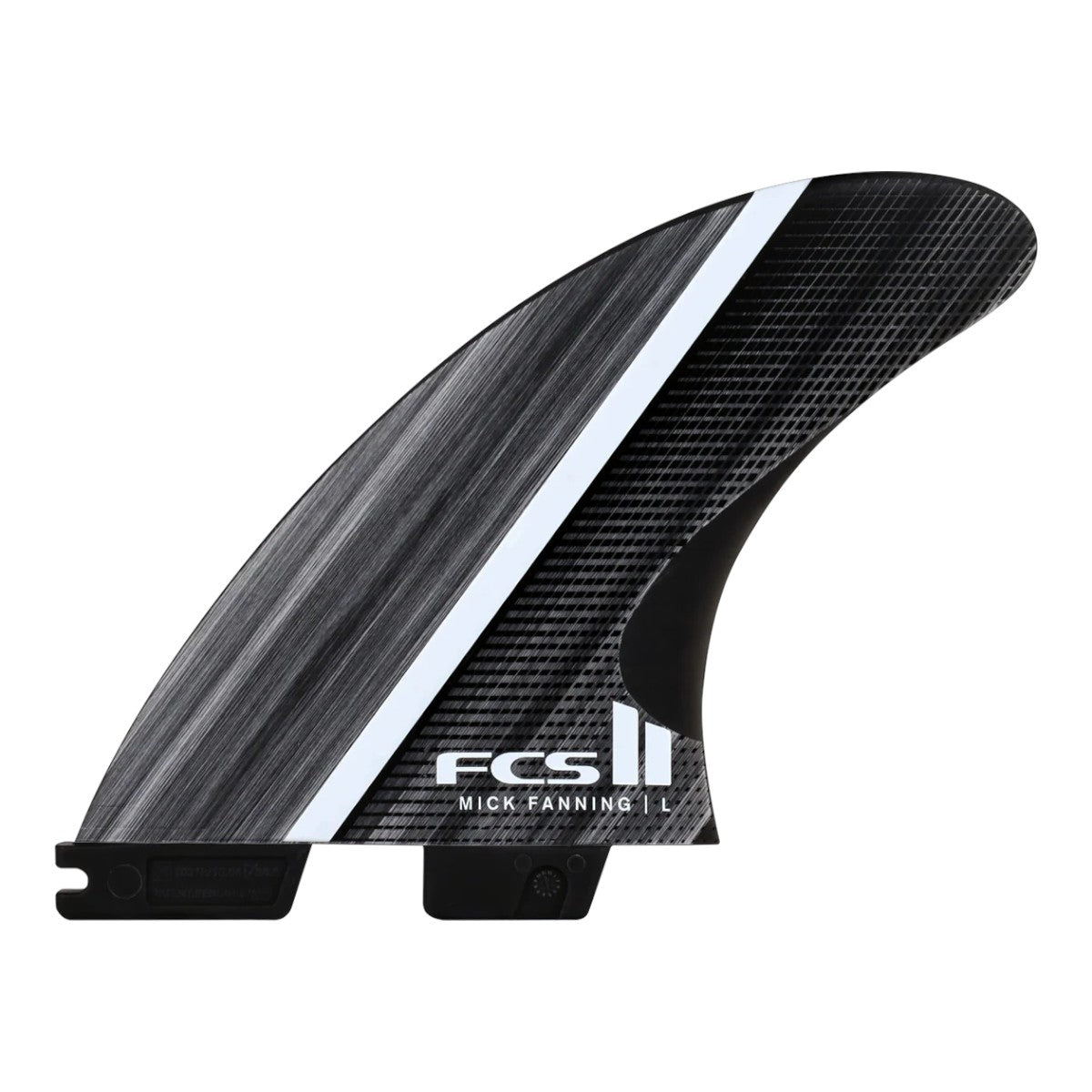 Mick Fanning’s Glass Fibre Fusion fin features Rapid Flex Recovery produced by High Tension Tip Flex. This dynamic and responsive fin pattern harnesses energy and instantly snaps back to its original shape, producing increased speed and acceleration between turns and more control during critical moments.