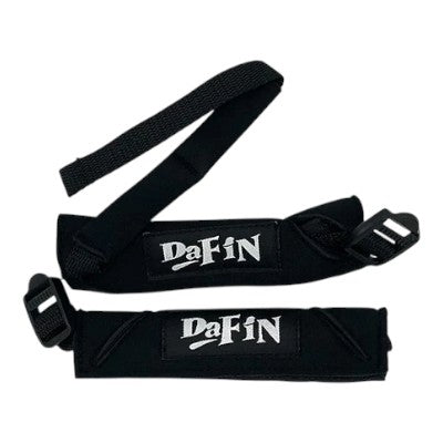 DaFiN Fins Savers are made of premium 2mm neoprene that securely wraps around the fin strap with a Velcro closure. They have a nylon strap that buckles around the front of the ankle helping to keep the user connected to their fins in the heaviest surf conditions.