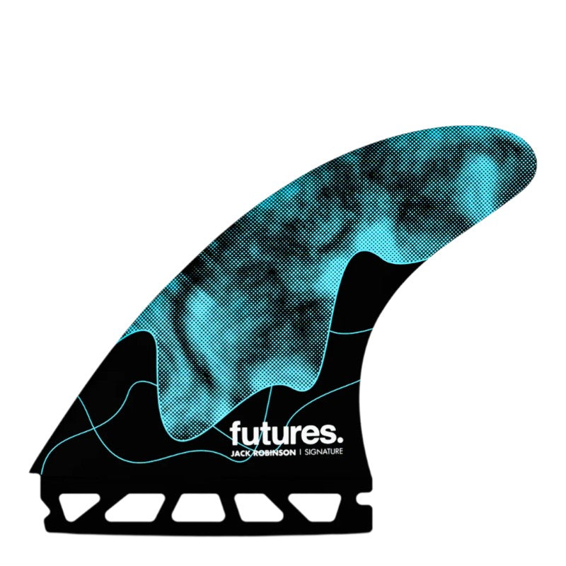 Jack Robinson's signature Honeycomb thruster fin is a large size fin in the Rake template category. Developed to suit Jack's style of surfing above and below the lip, he has been putting it through the paces at some of the best waves in the world with incredible success. The Honeycomb construction features a balanced flex pattern that provide a perfect blend of lively and stable performance in all wave types. The center fin is smaller than the side fins for increased maneuverability.