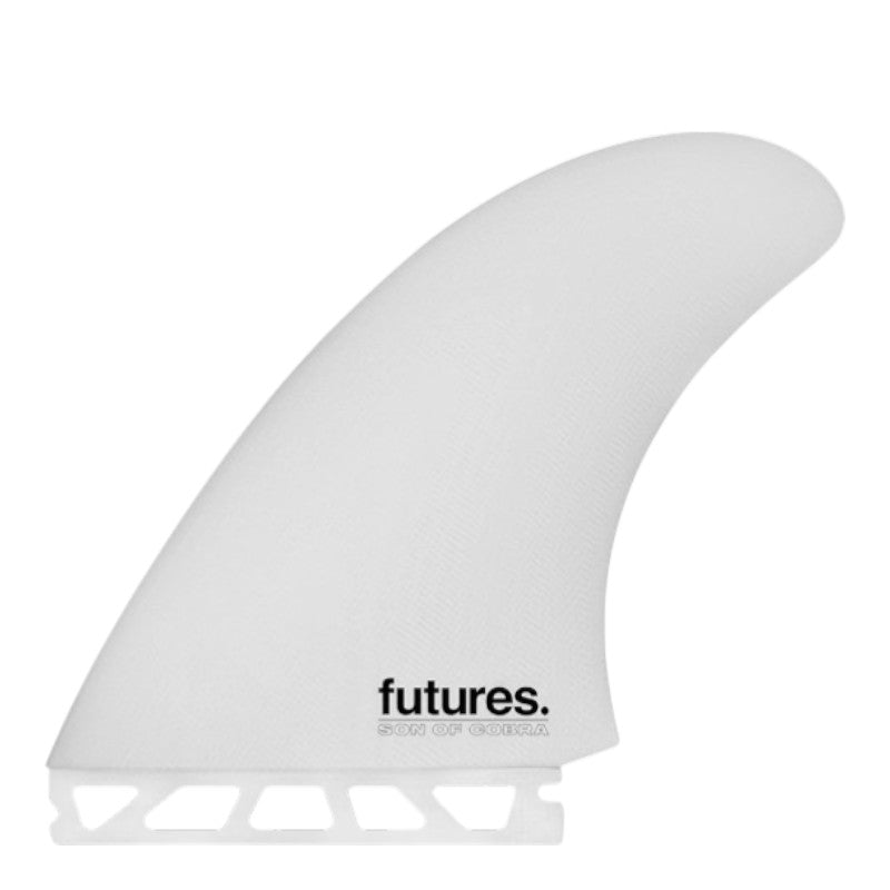 The Son of Cobra Twin is designed with extra cant angle to fit all Post-modern Twin fins with deep double concave bottom shape, especially the new ...Lost Cobra Killer and other Son of Cobra Round Twin. These fins have a 7.5 degree cant angle (4 degrees is standard for twins) specifically to be paired with the Lost Surfboards x SOC “Cobra Killer” board model. Solid Fiberglass construction combined with balanced base and height measurements provides maximum drive, while the thinner tip offers release and spring off the top.